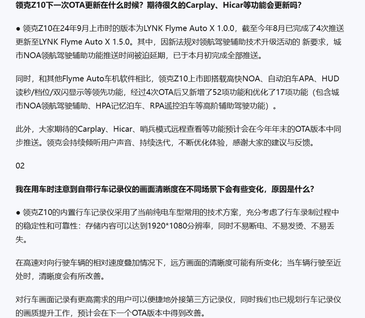 众所周知,与智能手机不同,汽车作为涉及安全的产品,任何功能更新都必须经过严格测试和验证。事实上,关于安全问题,领克穆军在回应也有提及。