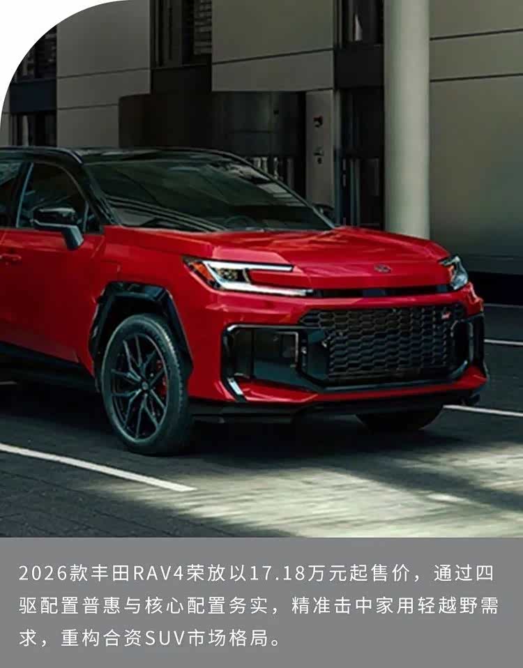 对于消费者而言,17.18 万入手合资四驱紧凑型 SUV,无疑是享受市场内卷的红利;而对于丰田而言,这一战略动作既是应对当下市场竞争的权宜之计,更是立足长期主义的行业布局。