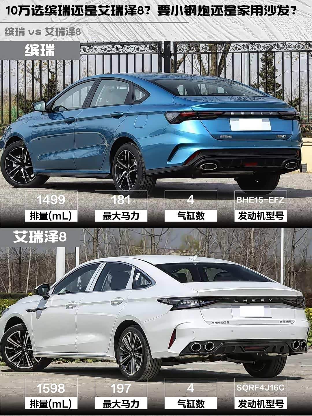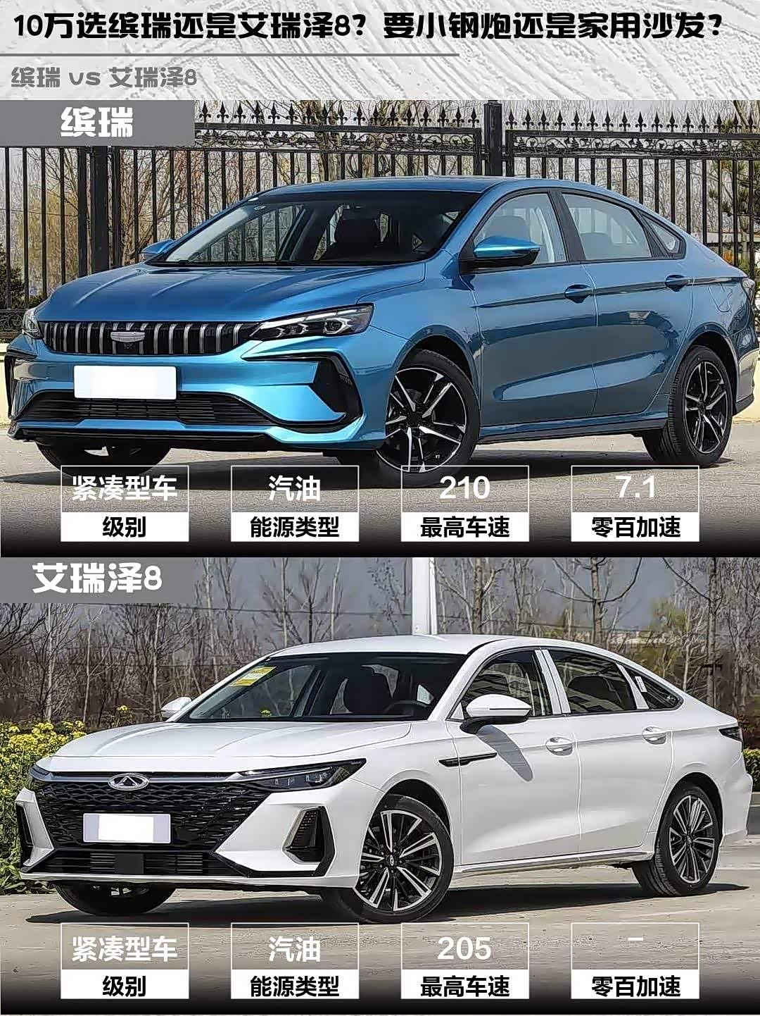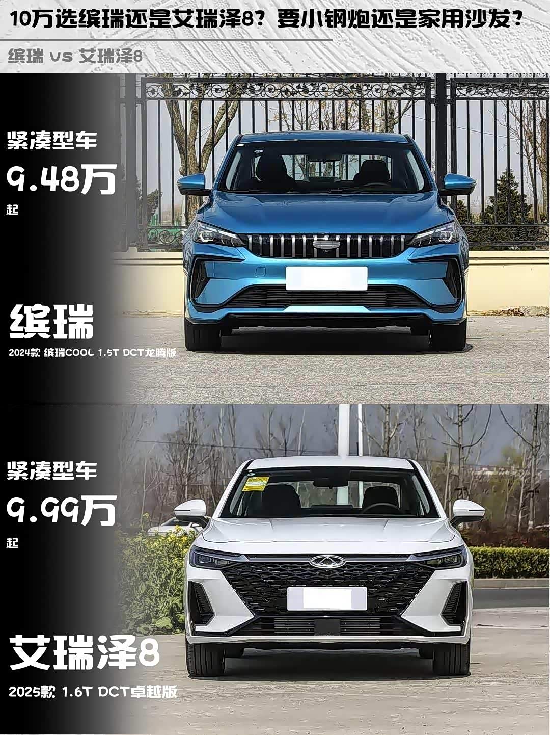 最近在10万级家轿市场纠结了好久,最终锁定了两款热门选手——2024款缤瑞COOL 1.5T龙腾版和2025款 艾瑞泽8(参数|询价) 1.6T卓越版。作为预算有限但追求驾驶乐趣的年轻人,实测对比后发现了不少有意思的差异点!🔥