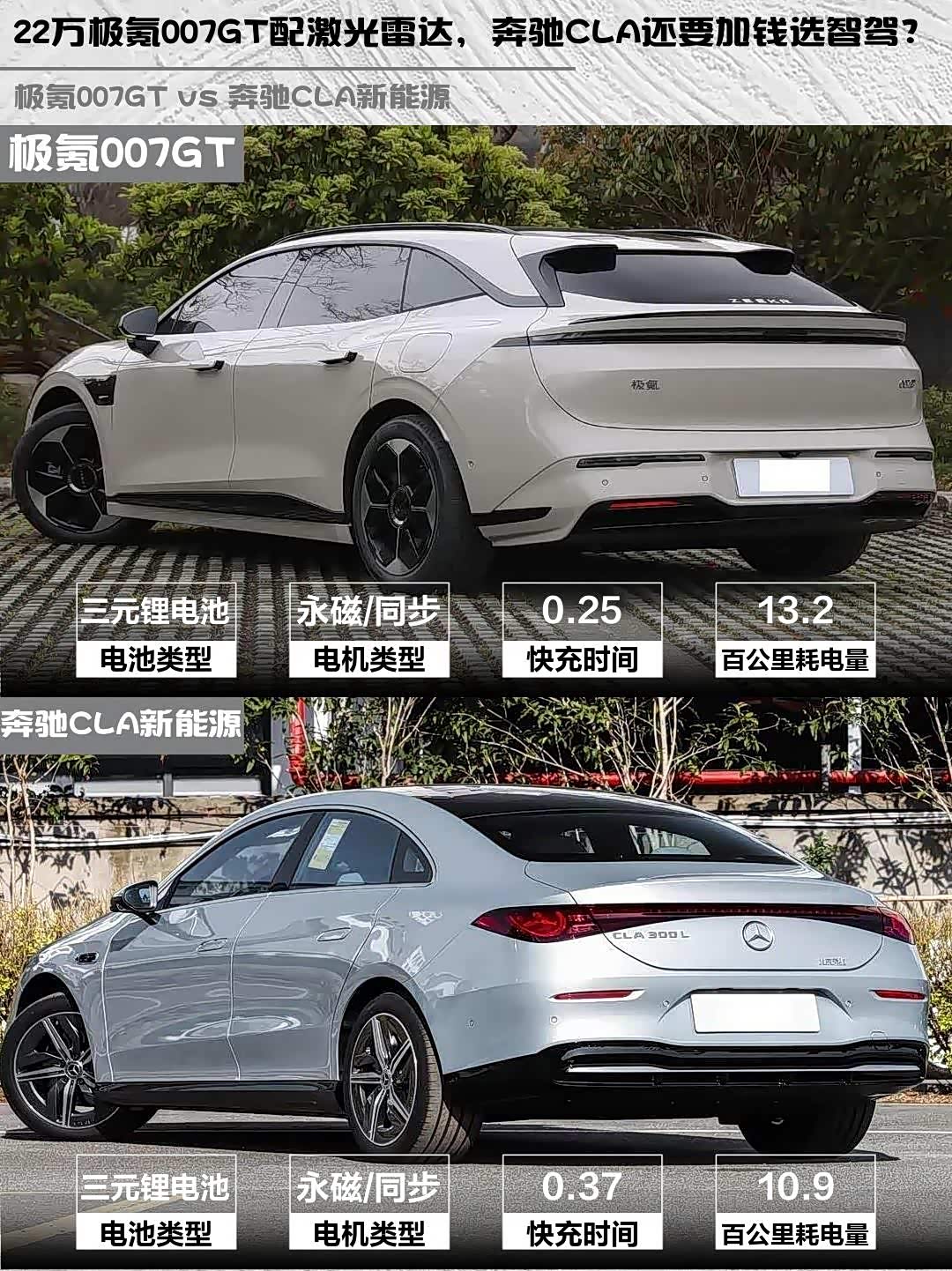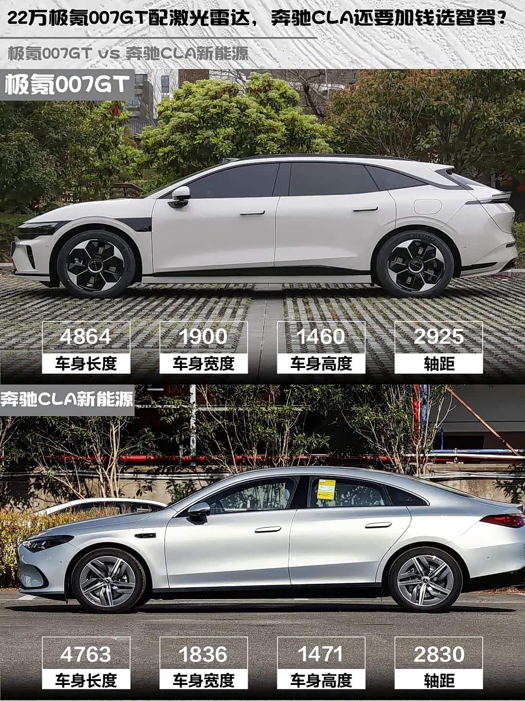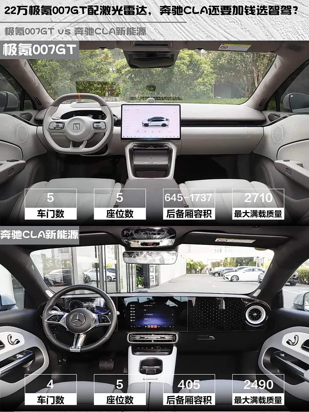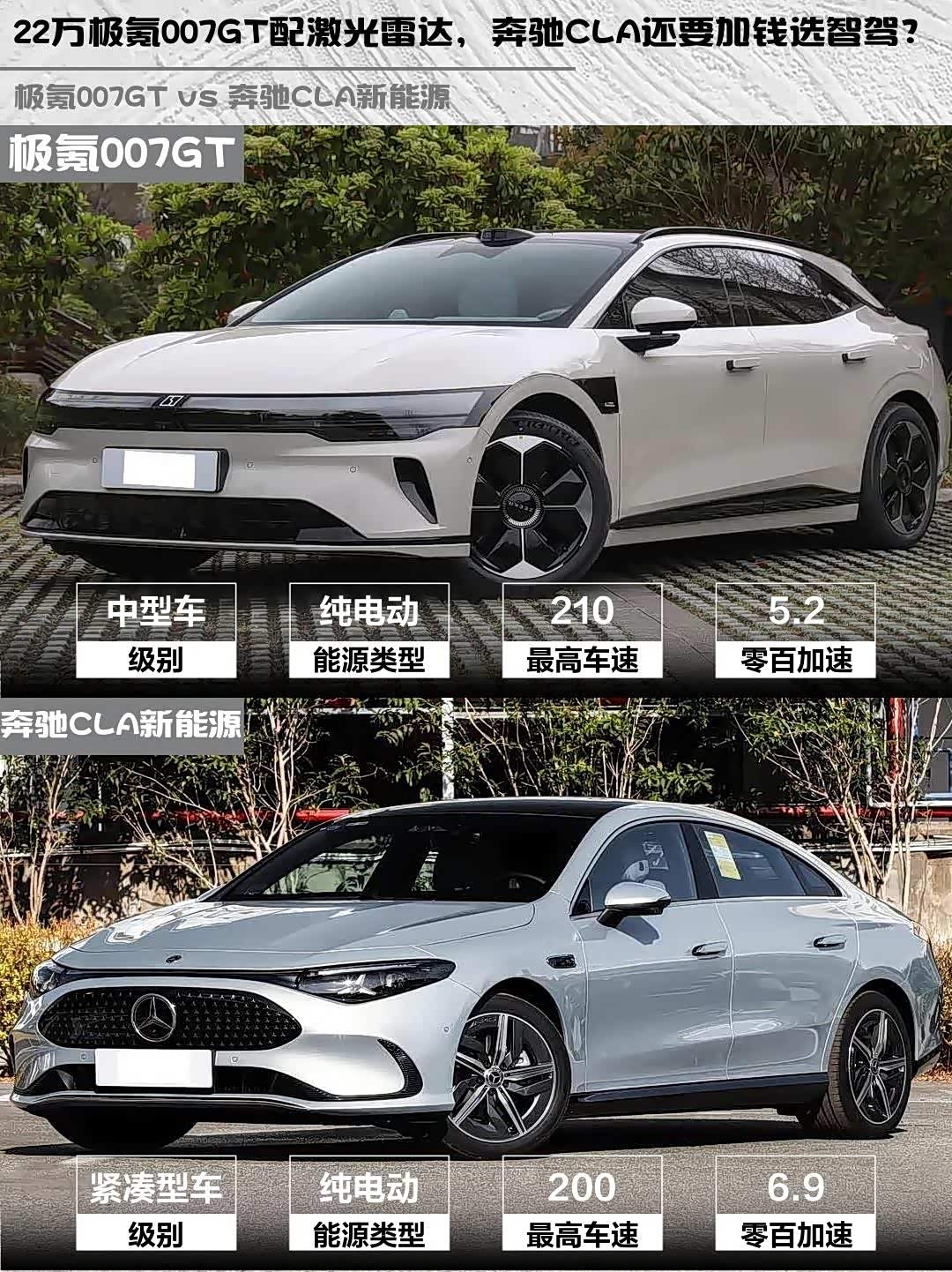 要驾驶乐趣+高性价比选极氪007GT,猎装造型+超大空间特别适合年轻家庭;更看重品牌溢价和豪华质感就选奔驰CLA新能源,适合都市精英日常通勤。我个人更倾向极氪,毕竟22万就能拥有800V超充+激光雷达,这配置放在BBA起码要40万+了!