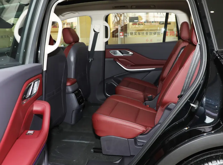 红旗HS7 PHEV对标的是7座版本的奥迪Q7,但后排空间确实宽敞很多,那五座版本就实用性高一些,后备厢大一些。如果你想要舒适度高,那么就要看6座布局,第二排为独立座椅,包括第三排也有一个比较好的坐姿和空间表现。那么7座布局也没问题,只是我觉得舒适度与五座版本差不多。那它后排也是配手抓手,皮革包裹的车门,皮革包裹的座椅,包括座椅填充也很厚实,坐上去的感觉很柔软,也是配有空调出风口和全景天窗,在用料与布局上,红旗HS7 PHEV后排质感以及层次感都要高于奥迪Q7,至少视觉上让你不会觉得很廉价。