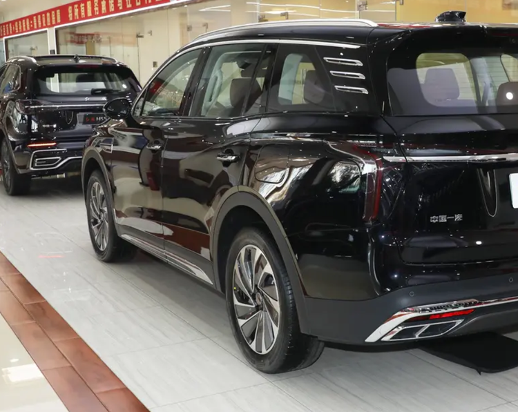 红旗HS7 PHEV车身看起来很修长,毕竟车长在那摆着,而且设计上也是很高端。标配车顶行李架,后排配有隐私玻璃,前排也有多层隔音玻璃,在A柱位置也有一抹红的专属设计,包括侧裙的镀铬条也能增加车身轮廓的金属感。运动型的轮毂也有20英寸,关键是机械门把手更实在,特别是D柱位置还有独有套件装饰,因此侧面的层次感很强。在驾驶质感上,红旗HS7 PHEV不能说让很失望,但与我的期待值差了一点,这台车其实对标的是奥迪Q7,但它采用了是前麦弗逊悬架,后多连杆悬架布局,这么大的车用这种悬架,给我感觉只能用来出行,对于路面的余震吸收并不到位,遇到颠簸路况还会有明显的冲击感,所以没有运动性可言。或者说它在运动与舒适之间做了一个平衡,整体风格调校偏家用,包括刹车调校很灵敏,轻点刹车就有点头现象,所以红旗HS7 PHEV是一台想要适应的车型。