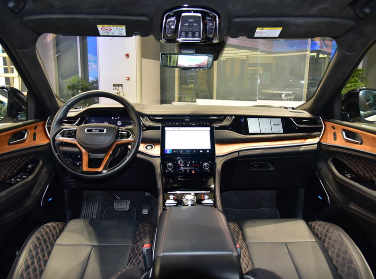 那作为成名已久的越野车品牌,大切诺基4xe又是品牌旗舰之作,越野能力应该会有优势吧?还是先看官方参数,新车的接近角30.4度,离去角为28.4度,通过角达到21.2度,涉水深度610mm以及离地间隙267mm,这确实是能够应对许多复杂路况。再配合着低速四驱扭矩可放大2.72倍、ELSD电子限滑差速器(可实现扭矩前后左右四轮分配)、Rock岩石攀爬模式、5大全地形驾驶模式、5级主动空气悬架可调等诸多功能,实际开起来和国产新能源越野车还真难分出高下。