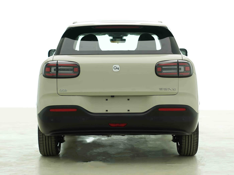 车尾部分,奇瑞QQ3EV的造型与前脸形成呼应,车顶配备有小尺寸扰流板和高位刹车灯,尾灯组也采用了熏黑处理,内部灯源点亮后也很有辨识度。此外,新车还配备了立体感很强的后包围,同时加入黑色饰板点缀,带来一些运动气息。