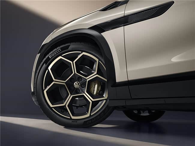 极具雕塑感的 D 柱设计,是与众 08 车身比例与型面线条融合的重要体现,其硬朗的轮廓与厚重视觉效果,与车身的整体比例相协调,让车尾部分与车身主体形成自然的视觉过渡,避免了车尾比例失衡的问题。同时,D 柱作为大众标志性设计元素的传承,通过比例与型面的结合,将品牌核心的安全、可靠 DNA 具象化表达,让比例之美不仅有视觉价值,更有品牌内涵的表达。在车尾部分,金色饰条点缀扰流板、隐藏式后雨刷的设计,均在保持车尾比例协调的基础上,让细节设计与整体比例相契合,高位刹车灯融入的狼头元素,也在小尺寸范围内实现了视觉平衡,让车尾比例更显精致。