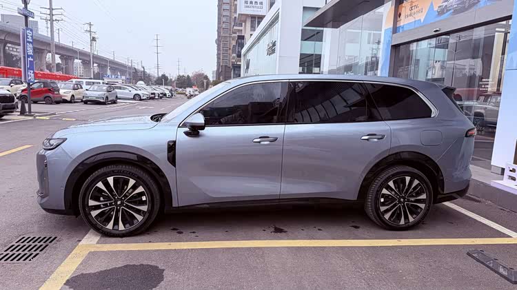 车身侧面是展现其旗舰定位的关键。其长宽高分别达到5235/1999/1800mm,轴距为3105mm。这个尺寸数据在当前同级别车型中显得颇有优势,为其内部宽敞的空间打下了基础。整个车身侧面轮廓饱满有力,凌厉的腰线勾勒出肌肉感。细节上,车窗上沿的镀铬饰条、前翼子板处的熏黑“鲨鱼鳃”装饰以及21英寸的双五幅式轮毂,都为其增添了豪华与动感的气息。