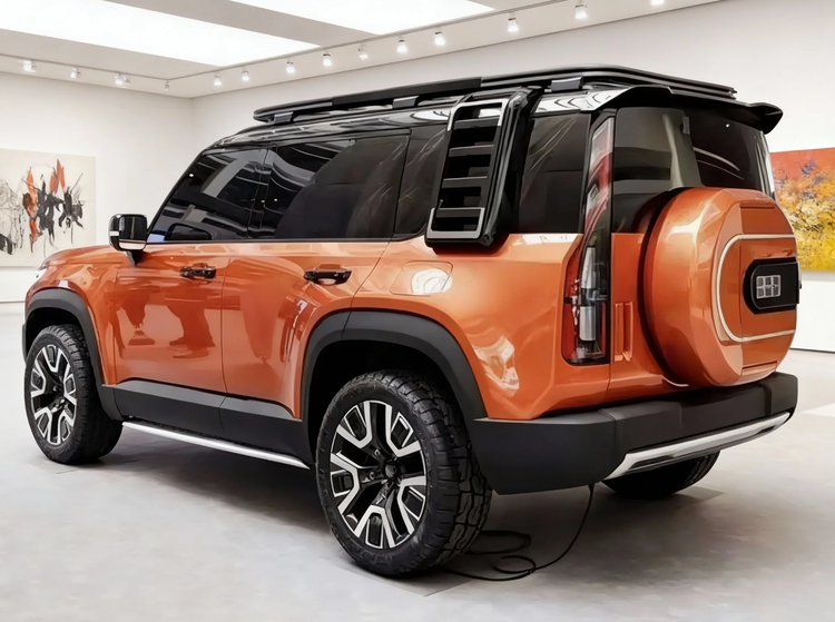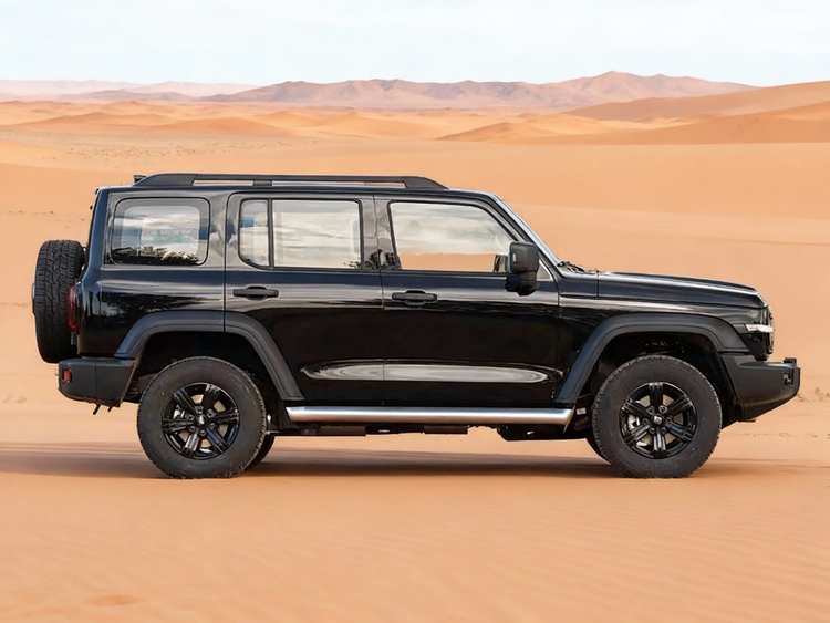 外观用了“东方醒狮”设计,搭配侧梯和备胎,硬汉气息十足。内饰硬朗,副驾和A柱都有抓手,细节照顾越野场景。