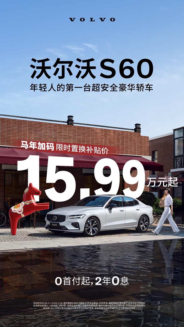 总结:通过上述介绍可以看出,沃尔沃S60这次绝非简单的市场价格调整,因为它没有影响到消费者对产品体验的更高追求,所以这或许是沃尔沃基于品牌长期发展战略,主动推动“豪华安全体验普及化”的重要一步。相信沃尔沃会通过这种更创新、更贴近用户的方式,为消费者带来更高认同感与满足感的出行选择,让品牌销量迈上新台阶!