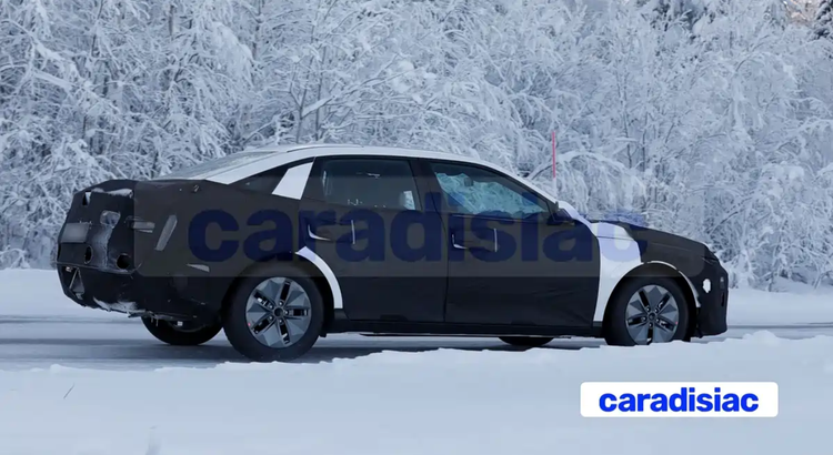 从侧面观察,新一代伊兰特整体比例并未进行激进调整,车顶曲线与现款车型保持相近设定,轴距变化预计有限。这种处理方式有利于继续兼顾后排头部空间与车内纵向空间利用率。值得注意的是,车身腰线仍保持较明显的前倾走向,配合轮拱与门板折线设计,有助于在高速行驶中降低视觉重心。从家用角度看,这种比例调整更偏向稳定性与风阻控制,而非单一造型导向。