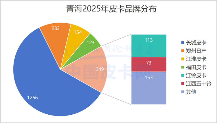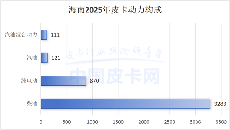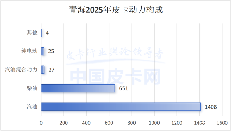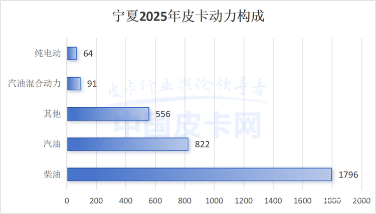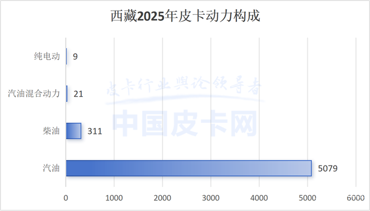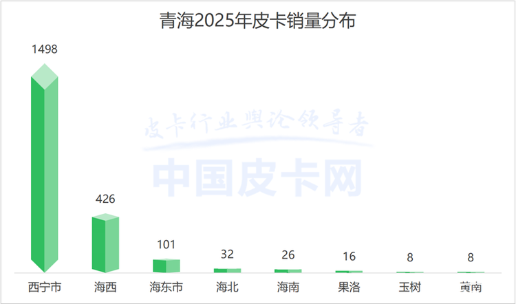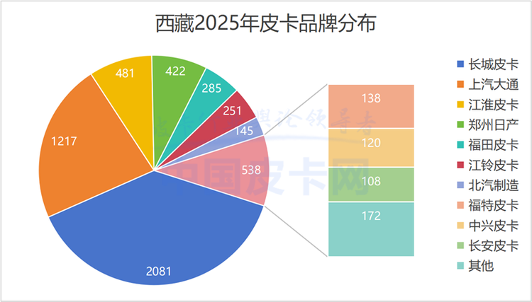 西藏市场特点极为鲜明,2025年全年销量5420辆,日喀则和拉萨是主要销量市场。动力类型与全国普遍以柴油为主的情况截然相反,由于高原海拔对发动机动力的特殊要求,汽油皮卡占比高达93.7%,柴油车占比仅5.8%,新能源车型几乎可以忽略不计。品牌上,长城皮卡和上汽大通占据主导地位。