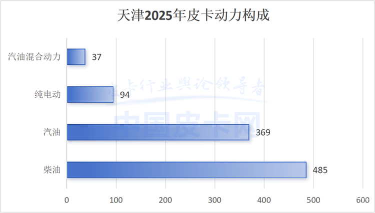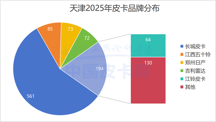 天津市场2025年销量为985辆,在直辖市中规模最小。与北京类似,在严格的交通管理政策下,皮卡市场容量有限,消费群体以郊区用户和特定行业为主。动力类型与北京市场高度相似,以汽油皮卡为主,占比68.9%。长城皮卡是主要销售品牌,市占率为56.9%,江铃皮卡等品牌占据其余部分市场。