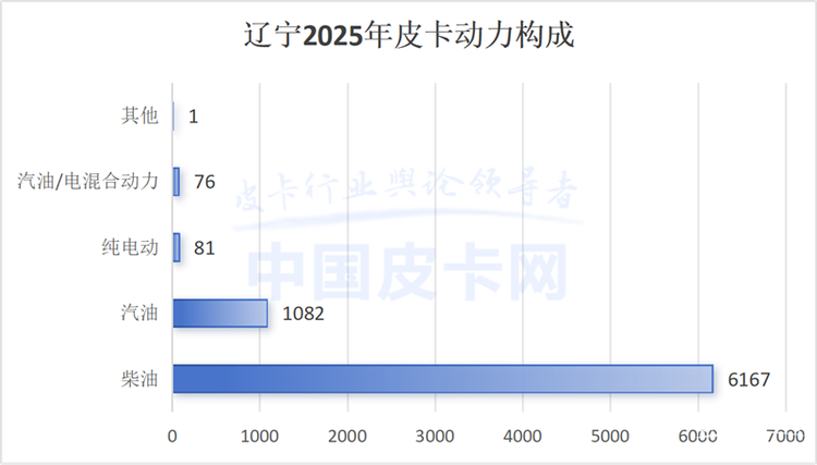作为东北老工业基地的重要省份,辽宁2025年皮卡销量为7407辆。沈阳市和大连市是两大核心市场。动力类型上,辽宁市场柴油皮卡占比高达78.5%,体现了东北地区用户对强劲扭矩和耐用性的传统偏好,汽油车型占比为20.1%,新能源占比仅为1.4%。品牌格局与全国大势趋同,长城皮卡以50.5%的市占率占据半壁江山。