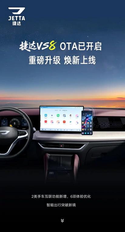 2月9日,一汽-大众捷达官方发布消息, 捷达VS8(参数|询价)车型完成最新OTA升级。本次升级重点针对车辆智能互联和用户操作体验进行了调整,并新增了两项车载互联系统功能。对于注重车机操作便捷性与互联生态整合的用户,这次升级提供了更多日常使用场景下的操作优化。