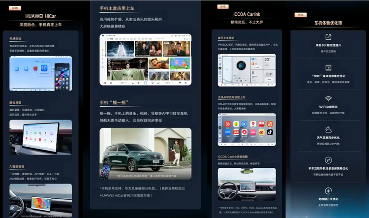 除了HiCar外,本次OTA还引入ICCOA Carlink功能,为用户提供跨品牌、多设备互联体验。Carlink可实现导航路线同步、实时语音播报及多媒体内容共享,并支持导航音频在车机与手机之间切换。这一功能在长途驾驶中尤其实用,可以让用户在不同设备间自由切换信息来源,减少驾驶分心,同时保持行程规划连续性。
