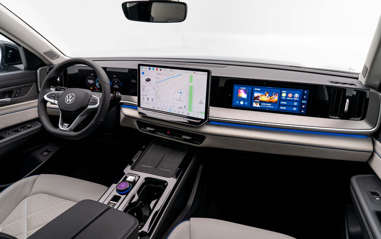 同时大量皮质/麂皮包覆,配合镀铬饰板点缀、IMD透光饰条以及人机交互氛围灯等,也进一步提升了豪华感,而诸如三幅式多功能方向盘+怀挡式旋钮换挡、双手机无线快充、光轮智控旋钮的加持,继续强调档次感。此外还将配备哈曼卡顿音响系统、全景天窗+遮阳帘、后排座椅加热等舒适配置,而后排座椅还支持纯平放倒,能进一步提升实用空间。