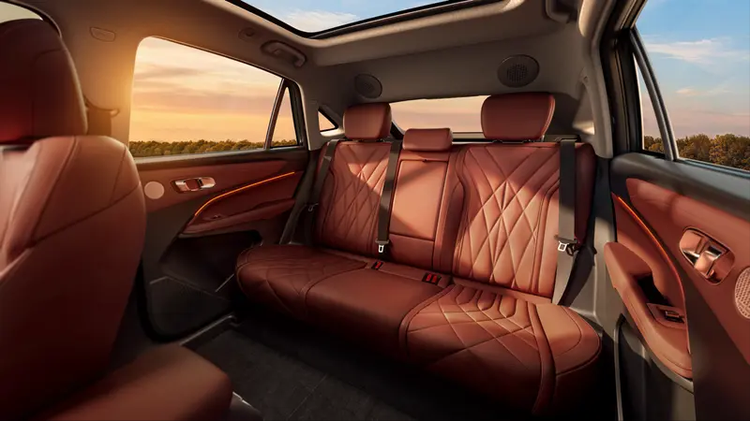 车内采用环抱式对称布局,中控线条从门板自然延展至仪表台,营造出开阔的包裹感。座舱以皮质材料和菱形缝线覆盖,钢琴黑饰板与触感旋钮点缀其中。主副驾座椅支持加热、通风和8点腰背按摩功能,可满足长途行驶中的舒适需求。后排座椅支持一键放倒,平整后排空间可形成1.93米长的睡卧面积,配合1.5㎡超大全景天幕,提升乘坐和休息体验。
