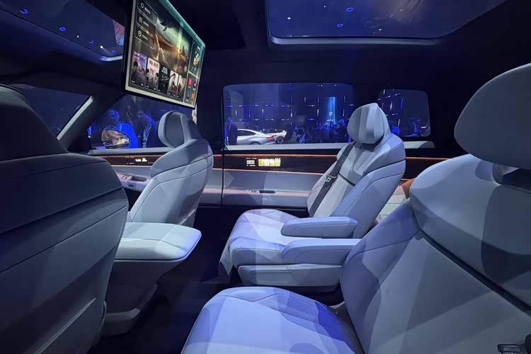 来到车舱的第二排,ID.ERA 9X不仅有吸顶式布局的娱乐屏,更在内门板装饰面板中提供了额外的液晶触控屏,这一设计会让二排用户在进行娱乐与多功能调节时更便捷、更直观。此外,车辆还有望落地副驾女王座椅、二排行政座椅等豪华舒适配置,按摩肯定是两排都能有,但6座中的第三排会有怎样的功能创新,这可能对于选择大六座的用户会更重要些。
