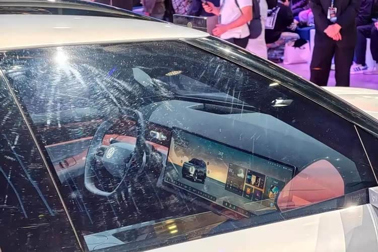 除了这些已经被展示了好几轮的外观设计,ID.ERA 9X也在近期被拍摄到了实车内饰。就如概念车的展示一样,这台德系增程让人第一时间联想到了小鹏,后者作为大众这一阶段的联合开发合作伙伴,不单单是贡献了电气平台,应该也算是给ID.ERA 9X带去了设计“捷径”。除了张贴着VW标识的三辐式方向盘外,新车所布局的小尺寸数字仪表、覆盖中控+副驾的一体式联屏,甚至是远端可以看到的中控与门板环绕过渡设计,都给人一种“鹏感”。