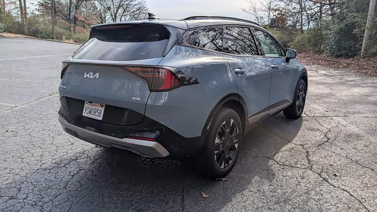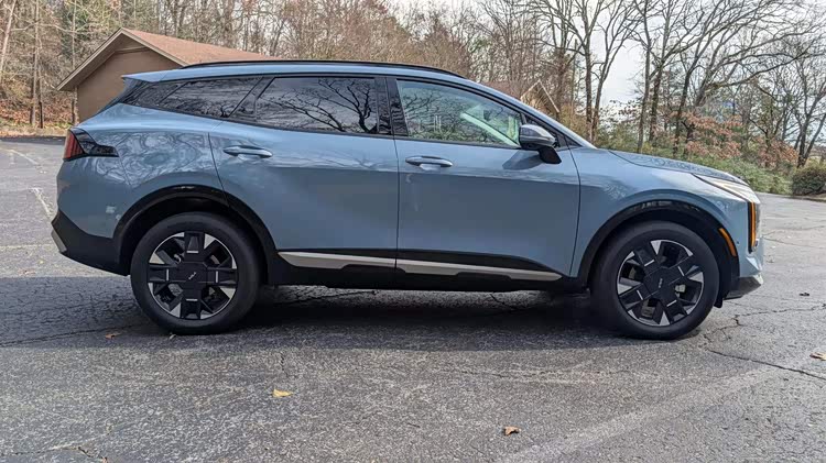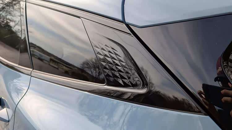 车身侧面作为改款车型,变化不大。淡蓝灰色车漆时尚感强,流畅的车顶过渡、独特的悬浮式D柱造型等元素依旧保留。侧裙处的镀铬装饰与十字形双色轮毂相互呼应,增强了整车档次感。车尾部分,贯穿式尾灯有明显修改,内部换装C字形光源结构,更显个性。车顶扰流板、凹陷的尾箱线条以及后保险杠处大面积亮黑装饰和镀铬条,让整车风格协调统一。