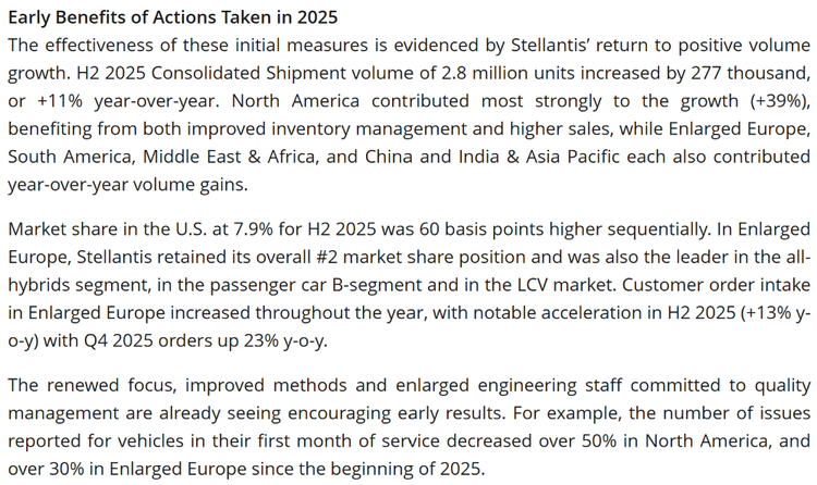 Stellantis集团于2025年下半年合并出货量为280万辆,同比增加27.7万辆,增长11%。北美对增长贡献最大(+39%),泛欧、南美、中东和非洲以及中国和印度及亚太区也各自贡献了同比增长。