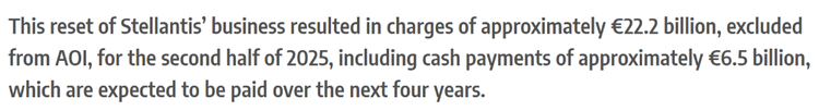 产生如此巨额亏损的主要原因主要就是Stellantis集团的业务重组计划,根据Stellantis方面在公告中的说法,此次Stellantis业务重组导致约222亿欧元(约合人民币1824亿元)的费用。