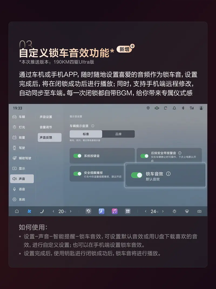 座舱层面的改动相对分散。DiLink系统的UI界面重新设计了信息层级,行车状态下的自动分屏逻辑得到强化,导航和娱乐内容不再互相遮挡。新增的盲区浮窗影像会在变道或转弯时临时覆盖部分屏幕区域,显示相应方向的实时画面。个性化设置方面,车主可以上传自定义音频文件作为锁车提示音,主题商城也上线了支持动态效果的界面皮肤。