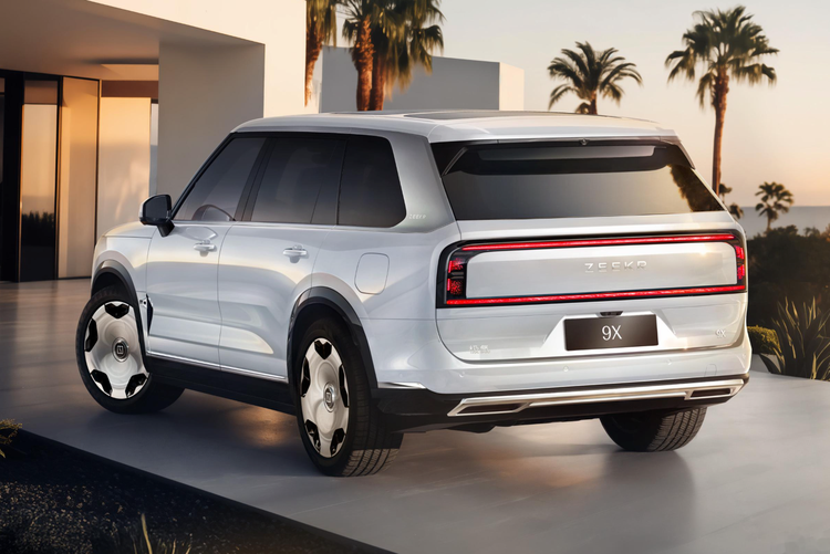 车尾设计饱满沉稳,贯穿式尾灯与前脸灯组形成呼应,线条锐利却不浮夸,底部熏黑扩散器点缀,为沉稳的车身注入一丝运动气息。车身提供极夜黑、极地白两种经典配色,均采用高端车漆工艺,极夜黑深邃静谧,如同子夜苍穹,彰显强大气场;极地白纯净通透,似北极融雪折射的微光,简约中藏着细腻质感。个人觉得,极氪9X的外观最难得的是“不张扬却有辨识度”,没有过度堆砌豪华元素,却能在细节处彰显旗舰身份,不管是商务接待还是家庭出游,都能轻松hold住全场。