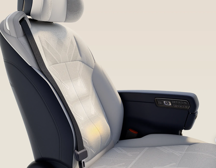 空间与舒适性配置更是拉满,三排六座的剧院式布局,170mm的宽阔中央通道,让三排进出更加便捷,彻底解决了传统六座SUV第三排“上下车不便”的痛点。第二排座椅支持140mm的电动前后滑移,最大躺倒角度达135°,拥有零重力、伊姆斯躺椅、旋转、专业按摩四种模式,其中旋转座椅模式可实现无级旋转,不管是商务会客、家人欢聚,还是变身旅居大床,都能轻松实现;第三排更是打破了“应急小板凳”的魔咒,支持电动调节,坐成年人也足够舒适,真正做到“座座皆豪华”。