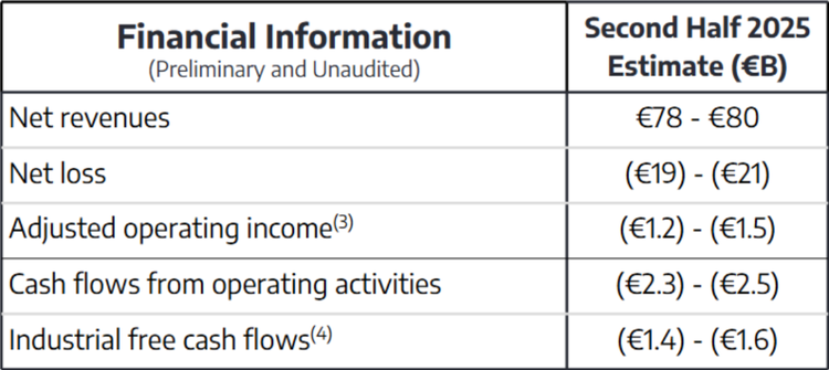 Stellantis 2 月 6 日发布财务公告,表示 2025 下半年预计亏损 1558.65-1722.72 亿人民币(190-210 亿欧元)。