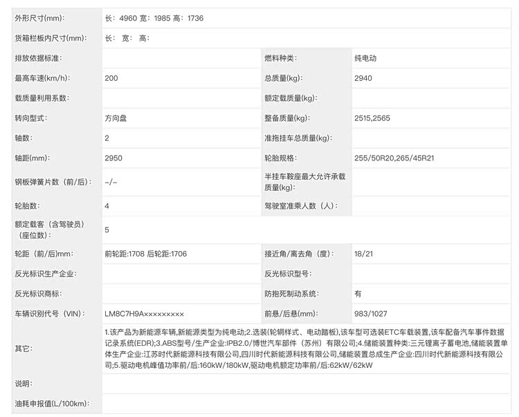 增程版本则搭载全新M15T发动机,与此前M7/M8上的HG15T发动机应该有所区别,输出功率也降低为112kW,具体技术差异尚未公布。这次增程版也是全系四驱,搭载前165kW/后180kW双电机,预计就是用双电机性能来平衡和纯电的定价差异。增程版申报了36度电和52度电的磷酸铁锂电池,供应商依然是宁德时代,WLTC纯电续航里程为180-272公里不等,亏电油耗为5.9-6.1L/百公里。