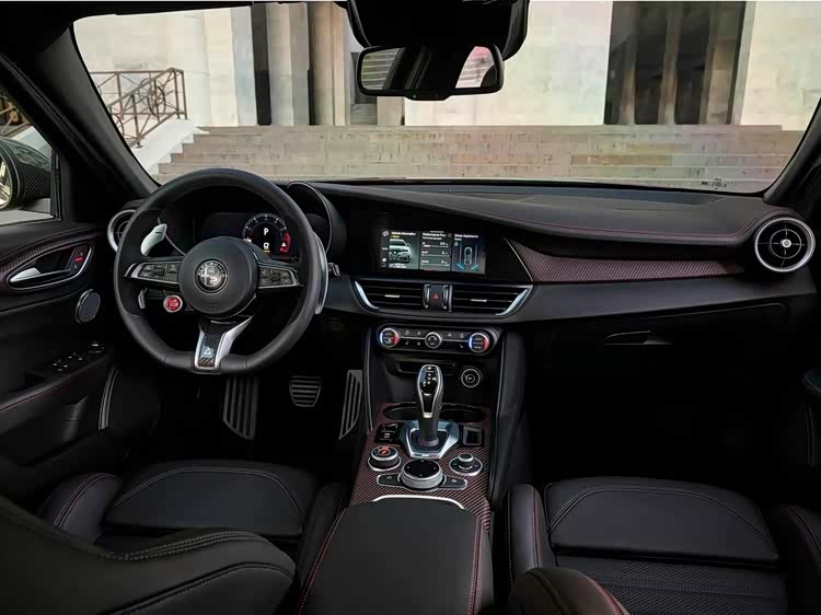 Giulia四叶草搭载的2.9升V6双涡轮增压发动机,由法拉利3.9T V8引擎缩减缸数改造而来。最大输出功率375kW,峰值扭矩600N·m,零百加速仅需3.9秒。
