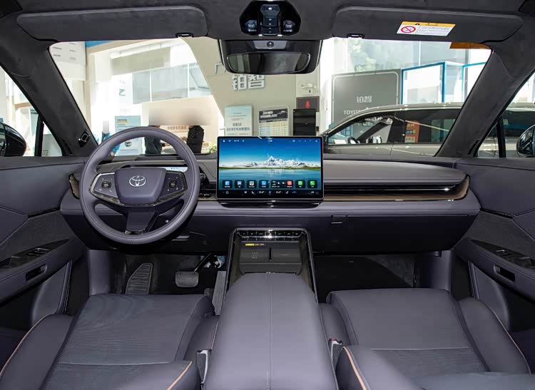 内饰一点儿也不“丰田”,配备了全新的大尺寸悬浮中控屏、抬头影像和仪表屏,将全系标配鸿蒙座舱5.0系统以及小米智能生态,并配备副驾零重力座椅、车载冰箱、前后排无线充电、座椅加热/通风/按摩功能。智驾上搭载Momenta R6智驾辅助,支持城市与高速的高阶辅助驾驶。