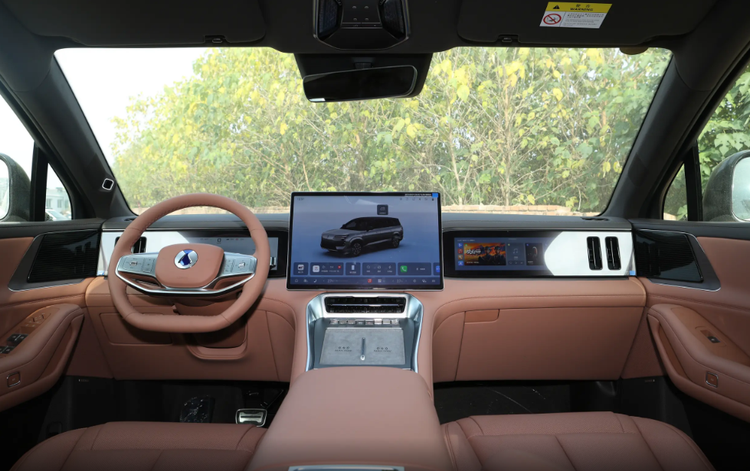 内饰设计布局沉稳中透露着科技感,中控台上一共集成了三块大屏,分别是17.3英寸中控屏、13.2英寸副驾娱乐屏和13.2英寸液晶仪表盘,悬浮式中控屏位置比较靠前,与后方屏幕形成错落有致的视觉效果。分区搭载丰富科技配置,车内大部分功能都被集成在中控屏内, 考虑到实用性,车内保留了一排物理按键,在实用性方面不需要担心。车内空间宽敞舒适,尽可能照顾到每一位乘客的乘坐舒适度。