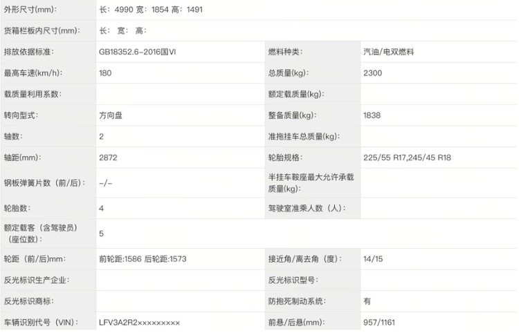 尺寸数据很有意思。车长4990mm,比燃油版一样,但轴距多了1mm,变成了2872mm。这1mm的差距,大概率是底盘件或者悬挂为了适应电池包重量做的微调,根本不是为了空间。