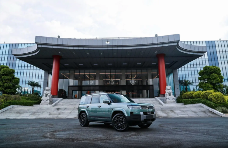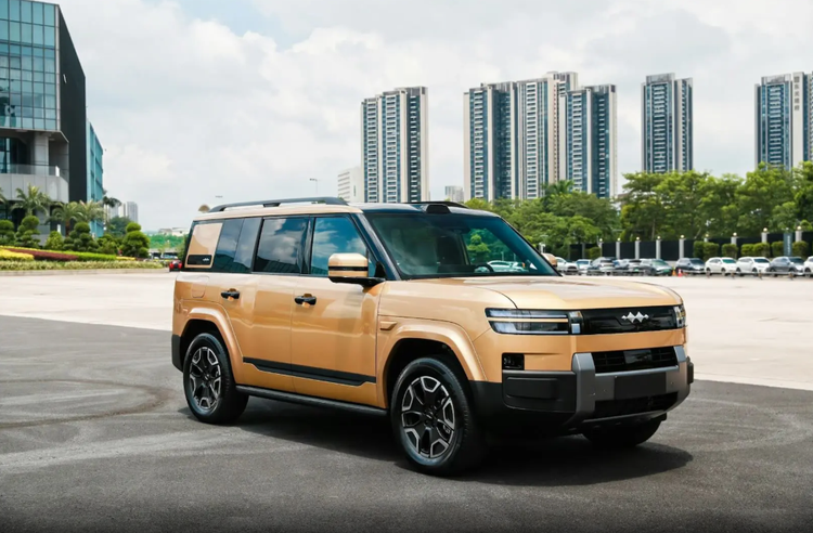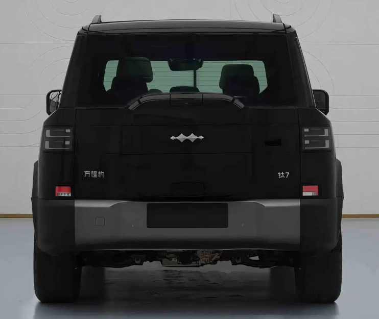 侧面线条硬朗简洁,车顶带有行李架,车门带有常规的外置式门把手,加上脚踏板、突出的轮眉,硬派风格十足。尺寸方面,方程豹钛7纯电版长宽高分别为4999/1995/1865mm,轴距为2920mm,接近角/离去角分别为23/25度,也和现款车型基本一致。