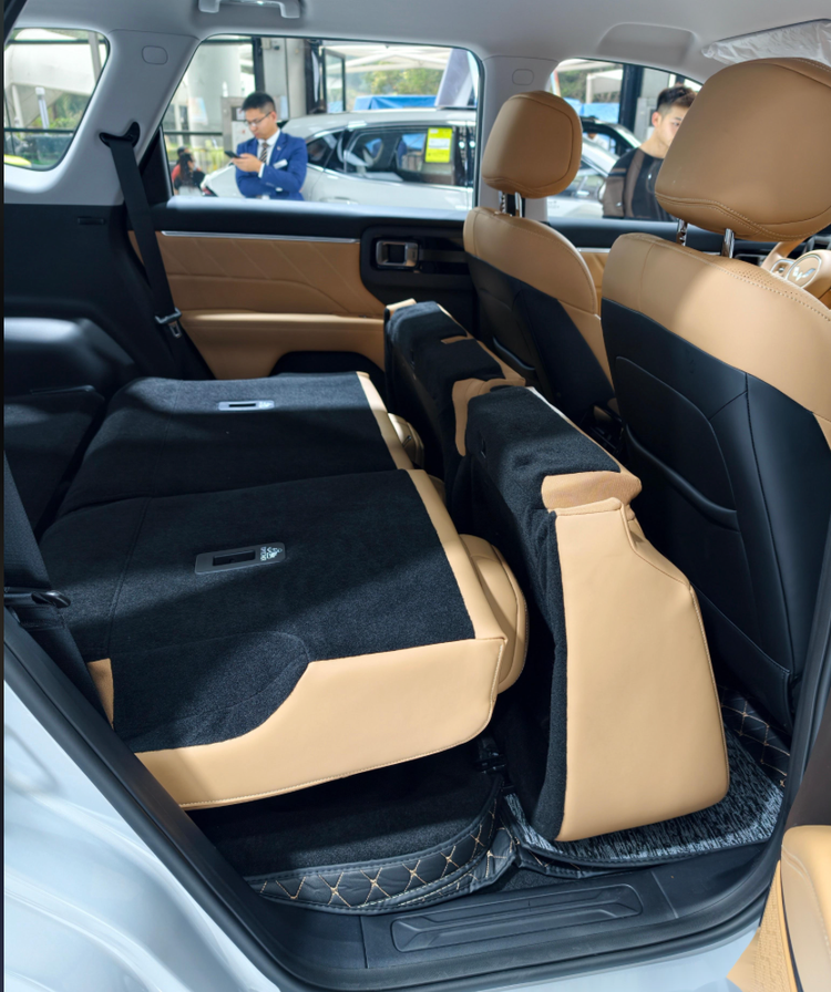空间表现是星光560的核心王牌,2+3的五座布局,真正实现了“全员舒适”,彻底打破了传统紧凑型五座SUV“后排局促”的魔咒。官方数据显示,车身横向宽度达1527mm,座间距宽达990mm,第一排头部空间充裕,腿部活动自如,第二排头部空间宽敞,腿部空间更是宽裕,即便是175cm的成年人,坐进第二排也能轻松翘起二郎腿,长途乘坐也不会太累。更贴心的是,第二排座椅支持靠背角度调节(最大可调节至128°)和4/6比例分割放倒,前排座椅可180°放平,和第二排能形成一个可供临时休息的平整空间,不管是长途休息还是临时放置大件物品,都十分方便。