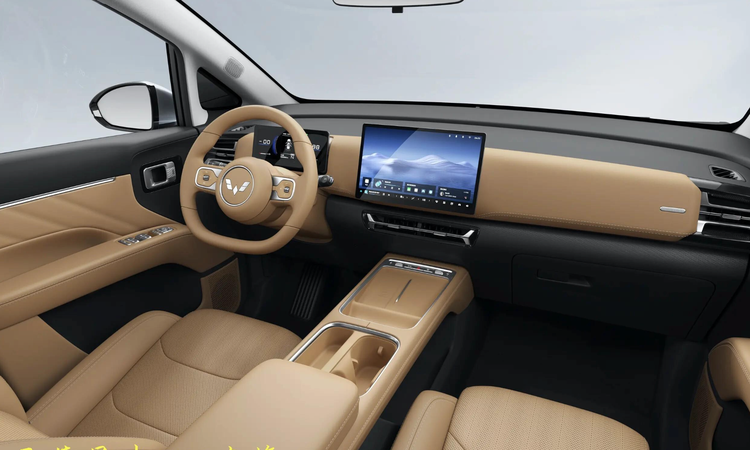 前脸采用五菱家族式的简约设计,大尺寸进气格栅搭配镀铬饰条点缀,不浮夸却显精致,中间嵌入发光五菱LOGO,夜晚点亮时辨识度拉满。两侧的分体式LED大灯,上层是锐利的日行灯,下层是远近光组,配备自动大灯功能,阴天、傍晚能自动开启,不用手动操作,对新手和长辈都很友好,官方数据显示,大灯照射距离可达150米,夜间行驶视野更清晰,安全性也更足。