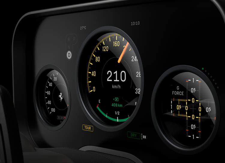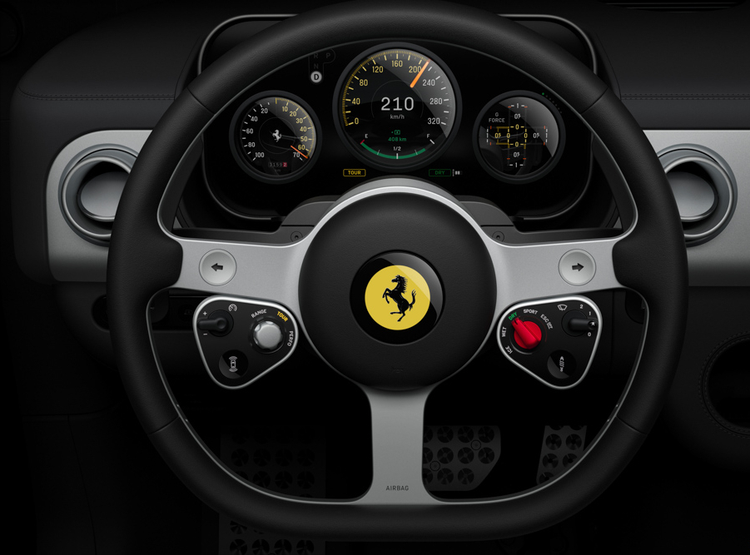 目光所及、触手可及之处,几乎皆为日常驾驶所需的关键操作。即便在界面高度简化的同时,设计团队仍坚持以“驾驶为核心”,大量保留行车时不可或缺的实体按键,甚至连仪表台上的指针也维持实体呈现,正好呼应法拉利此次所强调的「硬件与软件共生」设计理念。