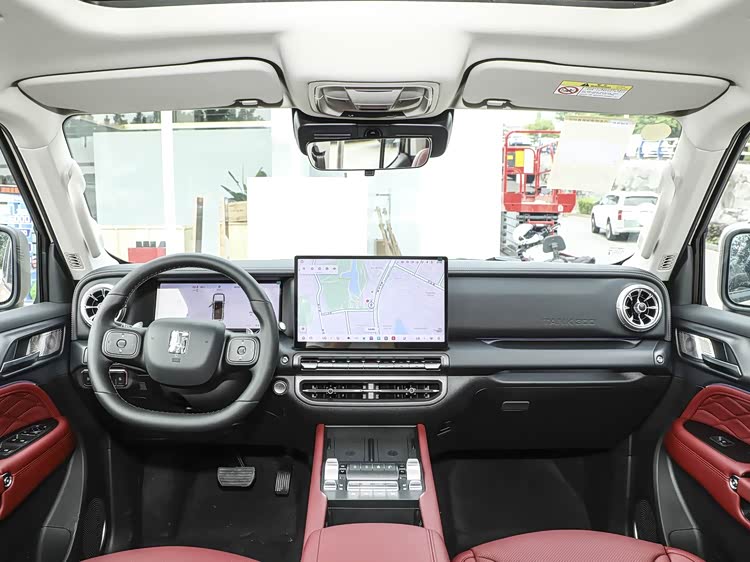 进入车内,坦克300新能源的内饰彻底打破了硬派越野车“简陋粗糙”的固有印象,采用大面积皮质材料包裹,科技配置方面,车内配备14.6英寸中控屏+12.3英寸全液晶仪表,组成双联屏设计,屏幕黑边较窄,显示清晰细腻,内置高通骁龙8155芯片,16GB运行内存确保操作流畅,支持CarPlay、HUAWEI HiCar等多种手机互联方式,空间表现方面,整车采用5门5座布局,轴距2750mm,前排头部空间1020mm,腿部空间充裕。