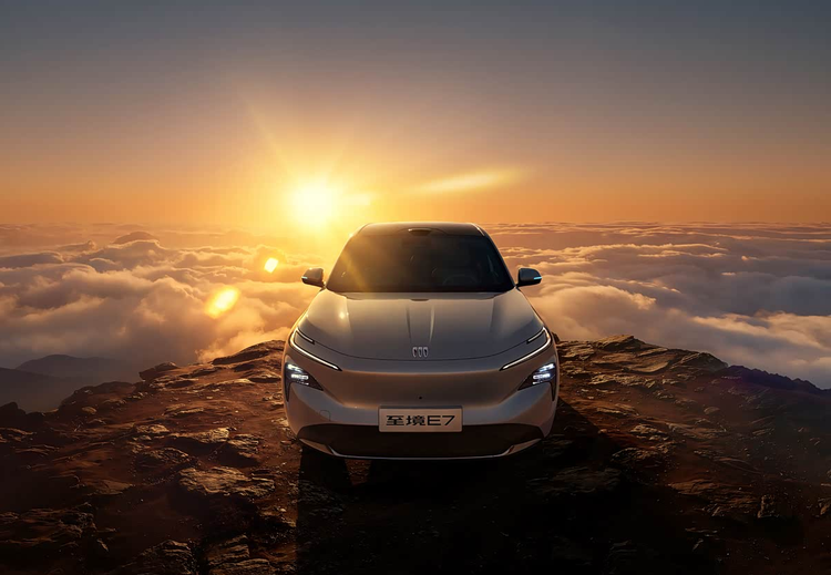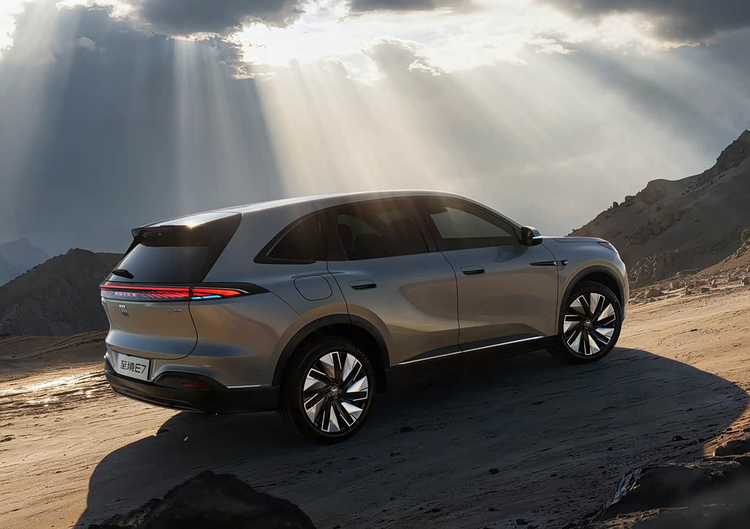 外观设计方面,至境E7延续了至境SUV概念车的"展翼元素"设计理念。车头采用分体式星河展翼大灯组,配合驭风鲨鱼前脸造型,整体辨识度较高。值得注意的是,车顶配备了激光雷达,将搭载"逍遥智行"辅助驾驶系统,该系统基于Momenta R6强化学习大模型开发,具备全场景辅助驾驶能力。