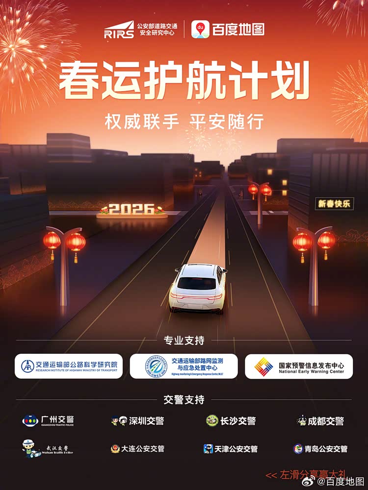 另一边,百度地图也在今年春运拿出了实打实的升级,联合公安部道路交通安全研究中心等权威机构,推出了专属的「春运护航计划」。