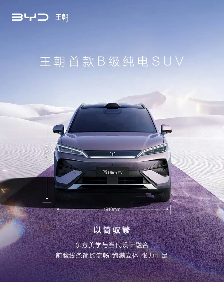 比亚迪宋Ultra EV官图发布 定位王朝首款B级纯电SUV/续航达710km
