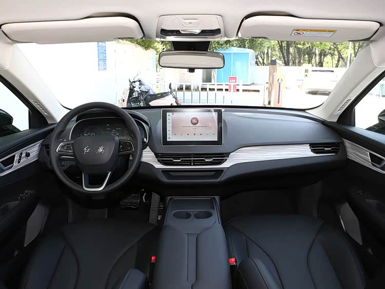 进入车内,2026款红旗E-QM5采用简约干练的设计风格,兼顾了豪华感、舒适性与实用性,精准贴合家用与商务双重需求。中控台采用对称式布局,配备内嵌式全液晶仪表与10.1英寸悬浮中控屏的组合,搭载红旗自研智能车机系统,支持导航、蓝牙、CarPlay等基础功能,操作逻辑贴合日常使用习惯,屏幕位置偏高,便于驾驶者行驶中快速获取信息。空间表现方面,5门5座布局贴合多元需求,2990mm的超长轴距让车内空间极为宽裕。实测身高180cm的乘客乘坐前排,头部与腿部空间充裕,不会有压抑感;乘坐后排,腿部余量超三拳,地板纯平设计,三个人乘坐时中间乘客也不会感到局促。