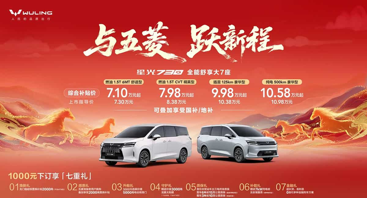 2月10日,上汽通用五菱宣布旗下紧凑型MPV 星光730(参数|询价)推出新春购车礼遇。用户以1000元下订该车,即可获得2000元无门槛置换补贴,老用户换购还可额外叠加2000元置换补贴。星光730目前提供4款配置车型,售价区间为7.30万-10.98万元。官方数据显示,该车上市80天累计销量突破26000台。