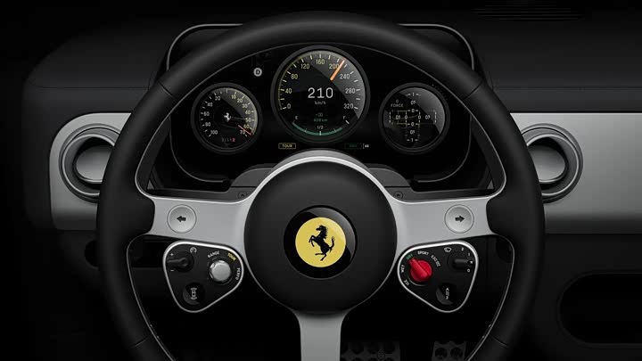 为了让你掌握换挡的时机,法拉利还在时速表的上方设计了一条醒目的扭矩指示条,在需要升档的时候,这条光带会像 F1 赛车方向盘上的换挡提示灯一样不断闪烁。