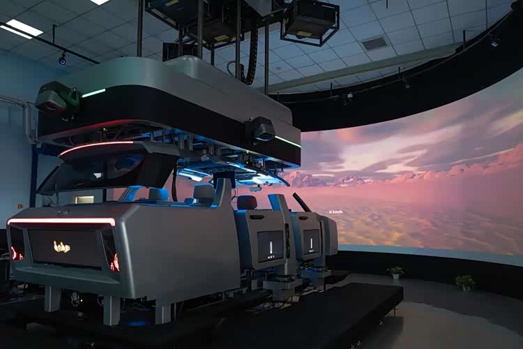 其中模拟视觉系统由4台激光投影、9米直径半圆幕和8.5米后幕组成,1:1还原真实驾驶视野,包括车道线、红绿灯、车辆行人及周边环境。