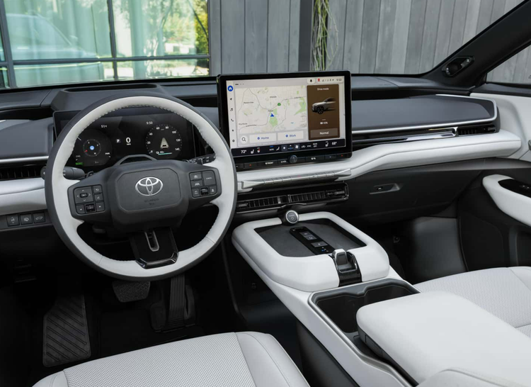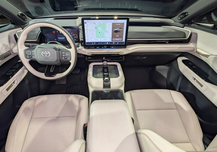 车内也运用了全新的布局,车厢采用黑色+白色的双拼配色,配备了12.3英寸的悬浮式仪表盘、14英寸的悬浮式中控屏幕,中控台采用多层次设计,保留有部分物理按键,多功能方向盘也经过了重新设计,将会配备丰田全新的Toyota Audio Multimedia车机系统,还有64色氛围灯的加持。
