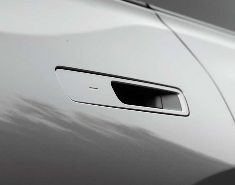 侧面采用了复杂的多腰线设计,门把手样式颇为独特,前半部分采用隐藏式布局,后半部分则为嵌入式镂空设计,车辆的轮眉采用了“n”字形设计,带来一定的硬朗气息。车辆的A柱、B柱、C柱、D柱均经过了熏黑处理,营造出悬浮式车顶的视觉观感,还配备有熏黑的侧裙。