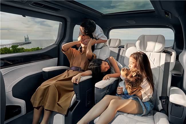 对于承载家庭温暖的时刻,七座过道版展现了无微不至的关怀。它拥有豪华MPV中最宽敞的中央通道和一级台阶,老人和孩子上下车轻松自如。在7.4㎡的“移动大平层”里,“母婴级”环保座舱、最高等级护眼灯、以及专为0-12岁儿童设计的守护APP,将安全与健康融入每个细节。