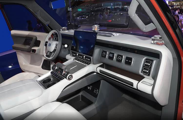 动力上搭载AI智能四驱系统,支持蟹行、原地掉头、爆胎行驶及障碍物连续自动避让。其自研的GVMC动态控制系统,使麋鹿测试通过时速高达80km/h。此外,车辆具备800mm涉水深度,并配备了卫星通信功能,确保全场景通联。